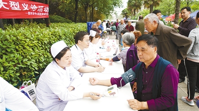 本报讯(记者 杨三川 通讯员 谢桥涛)今年5月17日是第15个“世界高血压日”。今年“世界高血压日”的主题是“知晓您的血压,享受健康生活”。5月15日上午,市中心医院副院长杨秀慧带领该院高血压科医护专家团队来到市区双汇广场,开展大型义诊、健康宣传教育公益活动。