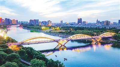 泰山路沙河大桥总长约315米,宽16米,1995年建成,为中承式系杆拱桥。因桥体被3组圆拱支撑,成彩虹状,被市民形象地称为“彩虹桥”。该桥是我市横跨沙河两岸的重要桥梁之一,同时也是城市的标志性建筑。