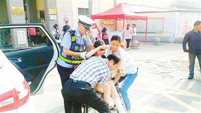 6月7日一大早,负责舞阳一高考点勤务的舞阳县公安交通警察大队城区中队骑警队队长刘行,带领队友在提前清理完考场门前路段交通秩序后,在考点道路两端设置安全防护装备,实行临时交通管制。上午8时20分许,一辆私家车意欲进入管制区内,刘行在询问后得知车主是考生的家长,车上乘坐着考生小丽(化名)。小丽在考试前不慎腿部骨折,行动不便,眼看马上就要开考了,小丽怎样进考场成了大难题。见状,刘行急忙喊来附近的爱心助考人士和同事一起将小丽抬到轮椅上,又为小丽买来了矿泉水和止痛药,边安慰小丽家长边推着小丽走向考场。