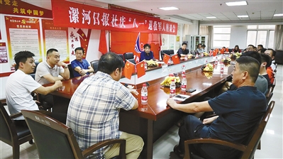 8月1日下午,漯河日报社举办庆“八一”退役军人座谈会。31名退役军人齐聚一堂,忆往事,抒情怀。报社领导向退役军人致以节日的祝贺,同时希望他们继续发扬军人的优良作风,为报社的事业增砖添瓦。本报记者 张琼元 摄