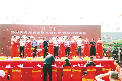 本报讯(记者 杨 旭)9月21日,位于柳江路与107国道交叉口的国际建材城内人头攒动,热闹非凡。原来,漯河赖氏家具旗舰店今天举办开业盛典。记者看到,现场不仅有精彩的歌舞表演,还吸引了许多业内人士和市民前来观礼。