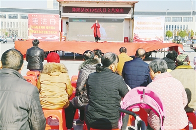 ①舞阳县86个单位参加“12·4”国家宪法日暨第二个“宪法宣传周”活动,通过摆放宣传展板、发放宣传资料、举办法治文艺演出,增强宪法宣传效果。