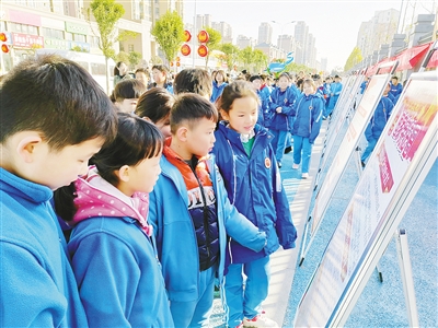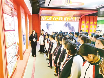 ⑤12月4日,漯河市未成年人法治教育展示厅迎来首批客人,市第二实验中学100余名学生入馆学习法律知识、观看宪法短片、参与各种多媒体游戏。据悉,该展厅面积2000平方米,分为“光明指引”“引以为戒”“以爱之名”“为了明天”四个展区,以丰富多样的互动展示方式对未成年人进行法治教育、安全教育和自护教育。本报记者 薛宏冰 摄