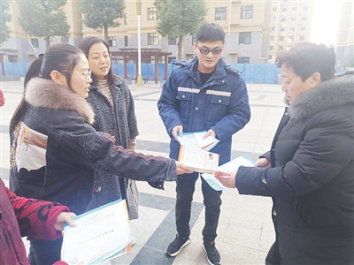 近日,漯河天阳供热公司加大集中供热宣传力度,向群众普及集中供热知识。图为该公司市场开发人员在黄山路盛世浩苑小区进行宣传。