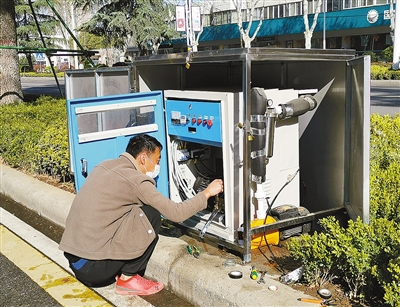 3月15日,市生态环境局郾城分局组织技术人员在调试雾森系统控制箱。据了解,这是我市首个道路雾森系统试点。该系统启用后,不仅能进行绿化灌溉,还能降尘、降温、保湿。 本报记者 范子恒 摄