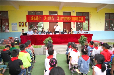走进舞阳县姜店乡郎庄村开展送法进校园活动。