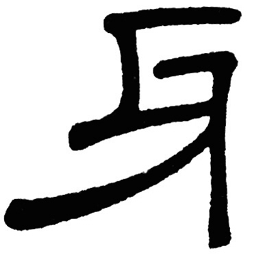 牙是象形字。从金文的形体看,就像口腔里相互交错的上下牙;小篆承袭金文字形完成线条化,隶变后进一步平整化,楷书写作牙。《说文解字》:“牙,牡齿也。像上下相错之形。”意思是牙指大齿,像上下相互交错的样子。牙的本义是大牙,就是位于口腔后方两侧的牙齿,即臼齿、槽牙。