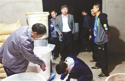 程伟(右一)在查获的制毒窝点指导工作。