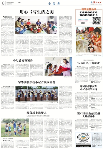 本报讯(见习记者 李宜书)6月30日,漯河日报社小记者团工作人员走进漯河市宇华实验学校,为该校16名优秀小记者代表送去2020年的第一份稿费。