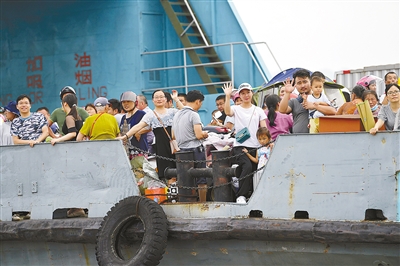 7月13日,远望6号船驶离中国卫星海上测控部码头,船员挥手道别。当日,远望6号船首赴三大洋执行海上测控任务。新华社发