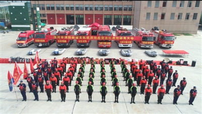 漯河市消防救援支队抗洪抢险救灾突击队整装集结