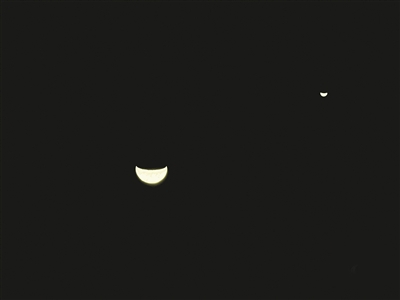 这是7月27日“天问一号”探测器利用光学导航敏感器拍摄的地月合影。 7月27日,北京航天飞行控制中心飞控团队与中国空间技术研究院试验队密切配合,控制“天问一号”探测器在飞离地球约120万公里处回望地球,利用光学导航敏感器对地球、月球成像,获取了地月合影。在这幅黑白合影图像中,地球与月球一大一小,均呈新月状,在茫茫宇宙