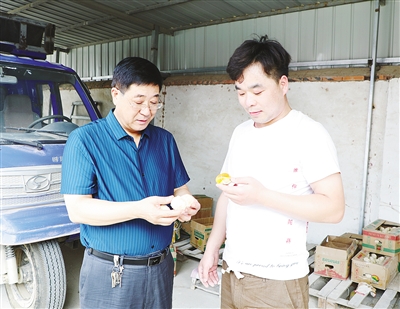 田林喜(左)在企业了解生产销售情况。