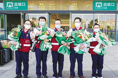 援疆医疗检验工作队凯旋。本报记者 杨 光 摄