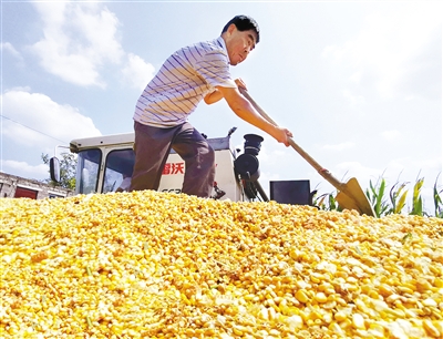 九月十二日,郾城区李集镇李集村玉米田里机器轰鸣。广大农民抓紧时机收秋。本报记者 范子恒 摄