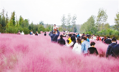 10月7日,舞阳县莲花镇境内的湿地公园内人头攒动,前来欣赏粉黛乱子草的游人排成了长队。“双节”期间,虽然天气不太好,但阻挡不住市民们外出游玩的热情,近郊和广场都成了市民的“打卡”地。本报记者 杨 光 摄