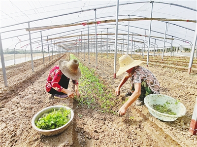10月10日,市城乡一体化示范区姬石镇胡桥村蔬菜大棚里,菜农忙着移栽菜苗。眼下正值秋播蔬菜季节,菜农抓住天气转冷前有利时机早播种,提高复种次数,促进增收。本报记者 范子恒 摄