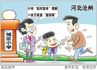家住河北沧州市区的李凌军,之前一直为接孩子放学发愁,正上小学一年级的女儿每天下午3时30分放学,而他和妻子5时30分才下班,于是轮流请假接娃成为二人的常态。现在,他们轻松了:学校延时放学到五点半,“接孩难”问题得到缓解。 新华社发