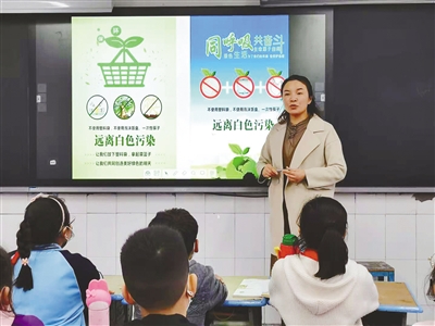11月16日,受降路小学分校组织各班开展限塑宣传班队活动。王新惠 摄