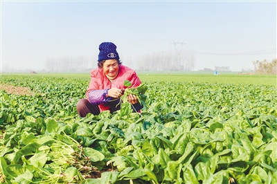 近日,郾城区孟庙镇西营村大片菠菜长势喜人,菜农忙着收获。