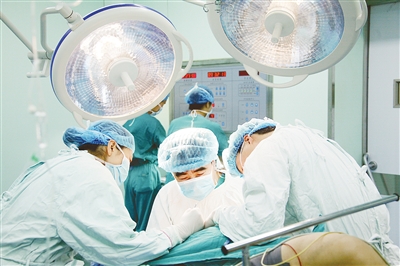 市中医院肛肠科医护人员在手术中。市中医院提供
