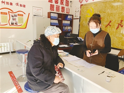 1月19日,在沙北街道泰山社区服务中心,工作人员帮助社区老年人申请防疫健康码,并指导老年人如何使用,以方便老年人出行。
