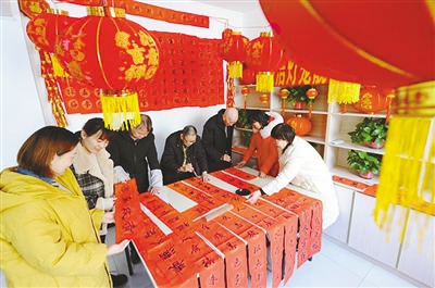 春节临近,为倡树简洁过节新风,近日,源汇区老街街道受降路社区组织社区书法爱好者为群众义写廉洁春联。潘可丽 李 娜 摄