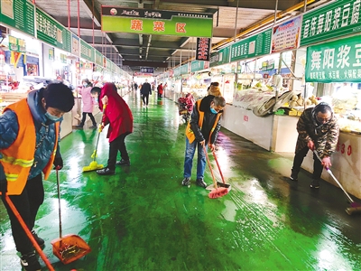 农贸市场连着老百姓的“菜篮子”“米袋子”,与市民生活息息相关。自创建全国文明城市以来,我市各农贸市场陆续得到整治提升,为市民带来超市般的购物体验。1月29日,记者走访看到,各农贸市场正在进行大扫除,市场管理人员、商户、志愿者、环卫工人一起干得热火朝天。