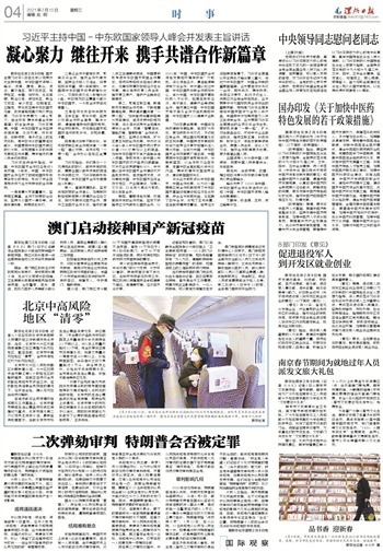 峰会发表了《2021年中国-中东欧国家合作北京活动计划》和《中国-中东欧国家领导人峰会成果清单》。