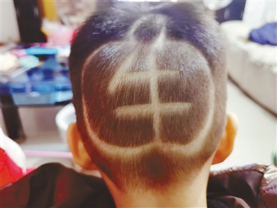 2月9日,一名儿童理了“牛”字的个性发型。见习记者 万天宇 摄