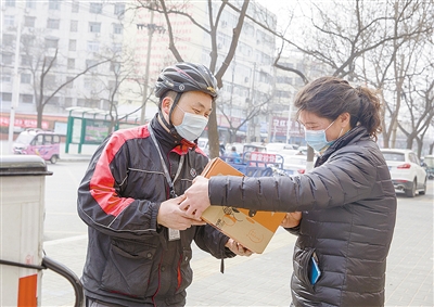 “我提前给爸妈说了,今年不回家过年,他们给我寄来了家乡的特产,有濮阳的壮馍、烧鸡、腊肉等,这些东西在漯河吃不到,可以分给送快递的兄弟们尝尝鲜。”2月7日,在五一路北段,快递员程元生在各小区来回奔波。