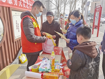 2月8日,漯河小学党员志愿者到郾城区前周社区开展志愿服务活动,并为贫困户送去慰问金和米、面、油等物品。付留栓 摄