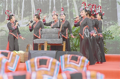 在“半条被子”故事发生地湖南省郴州市汝城县沙洲瑶族村,演员在二○二一年全国“村晚”示范展示活动中表演节目(一月二十八日摄)。 新华社记者 陈泽国 摄