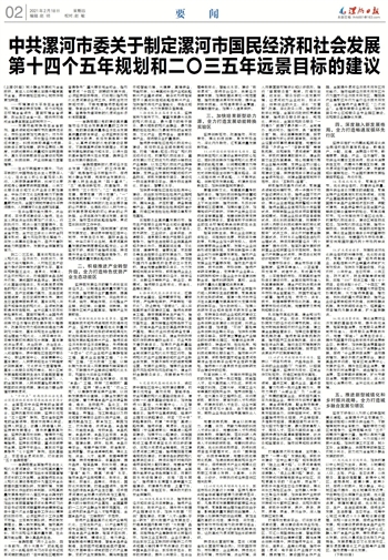 中共漯河市委关于制定漯河市国民经济和社会发展 第十四个五年规划和二〇三五年远景目标的建议