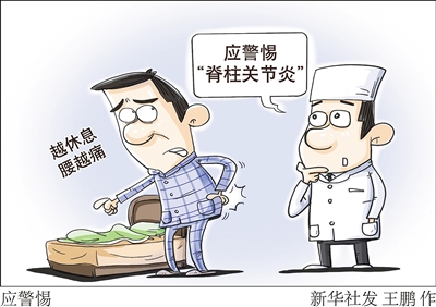 长期腰痛,而且越是长时间静止不动,疼痛越严重。专家提示,这可能不是机械性的腰肌劳损,而是“脊柱关节炎”,包括强直性脊柱炎,属于风湿免疫类疾病,以青壮年男性最为多发,极易被误诊漏诊。新华社发