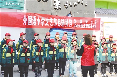 3月4日,源汇区外国语小学“沙澧之声”合唱团到建设路社区开展“文艺节目进社区”文明实践主题活动。楚娟娟 摄