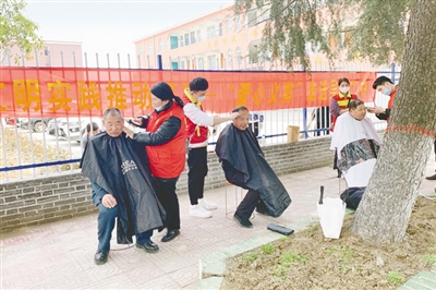 3月5日,市第一中专组织志愿者到舞阳县吴城二中开展爱心义剪活动。本报记者 李文姣 摄