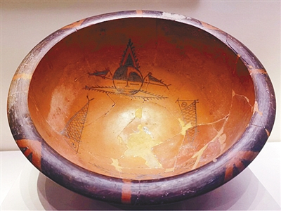 人面鱼纹彩陶盆。