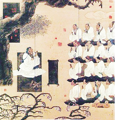 孔子一辈子东奔西跑,政治幻想彻底破灭之后,便神情黯然地回到故乡办私塾,招收弟子讲学。泗水、洙水是两条古河,淙淙流水环城而过,孔子创办的私塾就坐落在曲阜的松荫柏影之间。