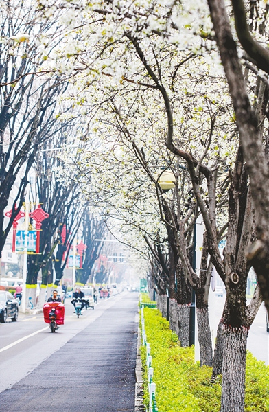 “每天上下班经过这里,我都要放缓车速。缓缓前行,仿佛置身白色的花海中,感觉非常浪漫。”最近,经过梨花大道的人都忍不住感慨。
