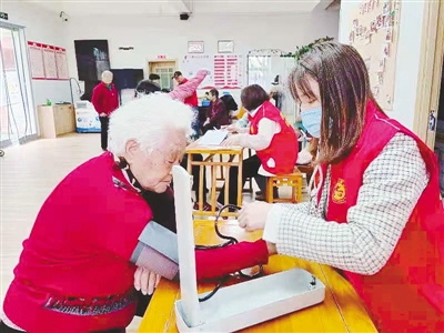 4月9日下午,沙北街道海河社区联合市第三人民医院志愿者,在辖区日间照料中心开展义诊及健康知识宣传活动。