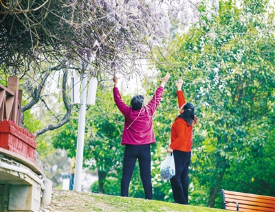 4月11日,沙澧河风景区红枫广场西侧的紫藤花惨遭“毒手”。