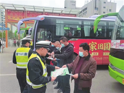 4月19日上午,市公安局交通管理支队源汇大队民警走进宏运汽车站,向客运车辆驾驶人讲解酒驾及醉驾的危害。王焕丽 摄