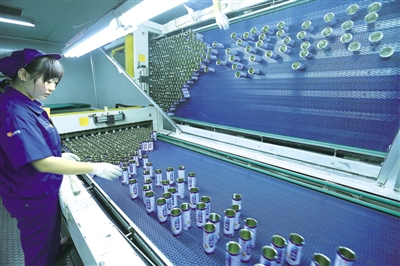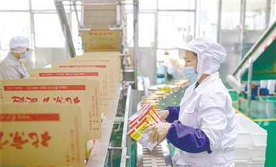 临颍县南街村方便面生产车间内工人们正在忙碌