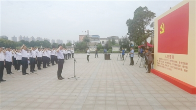6月21日,在市烈士陵园广场,郾城区举行新党员入党宣誓和老党员重温入党誓词活动,600余人参加。本报记者 陶小敏 摄