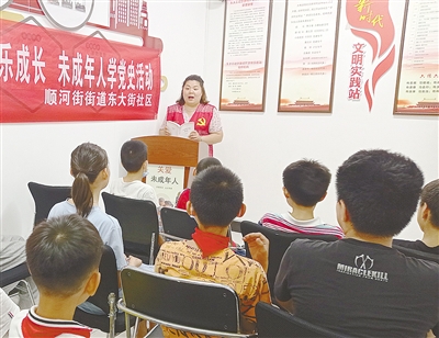 6月17日,源汇区顺河街街道东大街社区组织辖区未成年人在新时代文明实践站举行“童心向党 快乐成长”学党史活动。本报记者 王 培 摄