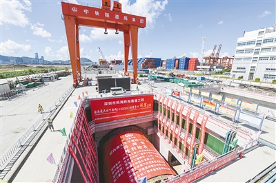 7月15日,“妈湾号”盾构机在深圳妈湾跨海通道工程建设现场始发。 当日,由深圳市交通公用设施建设中心、中国中铁南方、中铁隧道局承建的深圳首条跨海通道——妈湾跨海通道工程“妈湾号”盾构机从大铲湾段成功始发,标志着工程正式进入盾构施工阶段。妈湾跨海通道工程线路全长8.05公里,是连接深圳南山区前海片区和宝安区的海底地下工程。 新华社记者 毛思倩 摄