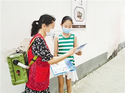 8月4日,郾城区龙塔街道陵园路社区妇联组建的巾帼疫情防控突击队队员走街串巷,宣传疫情防控知识。