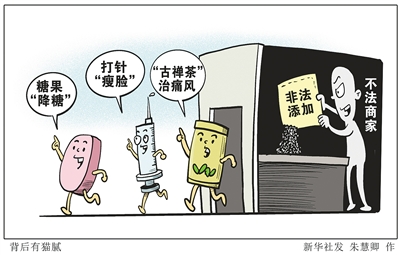 糖果“降糖”、打针“瘦脸”、“古禅茶”治痛风……市场监管总局近期曝光一批民生领域“铁拳”行动典型案例,在不法商家宣称能治病、美容的神奇疗效背后,隐藏着非法添加处方药、毒性药品等违法行为。