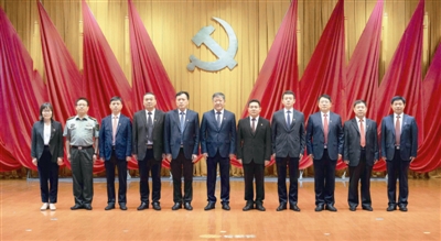 新当选的中国共产党漯河市源汇区第十五届常务委员会委员王继周(左六)、史一鸣(右五)、刘剑(左五)、蒋峥(右四)、李书旺(左四)、许绍伟(右三)、王晓辉(左三)、石红伟(右二)、张旭初(左二)、吕峥(右一)、李纪(左一)。